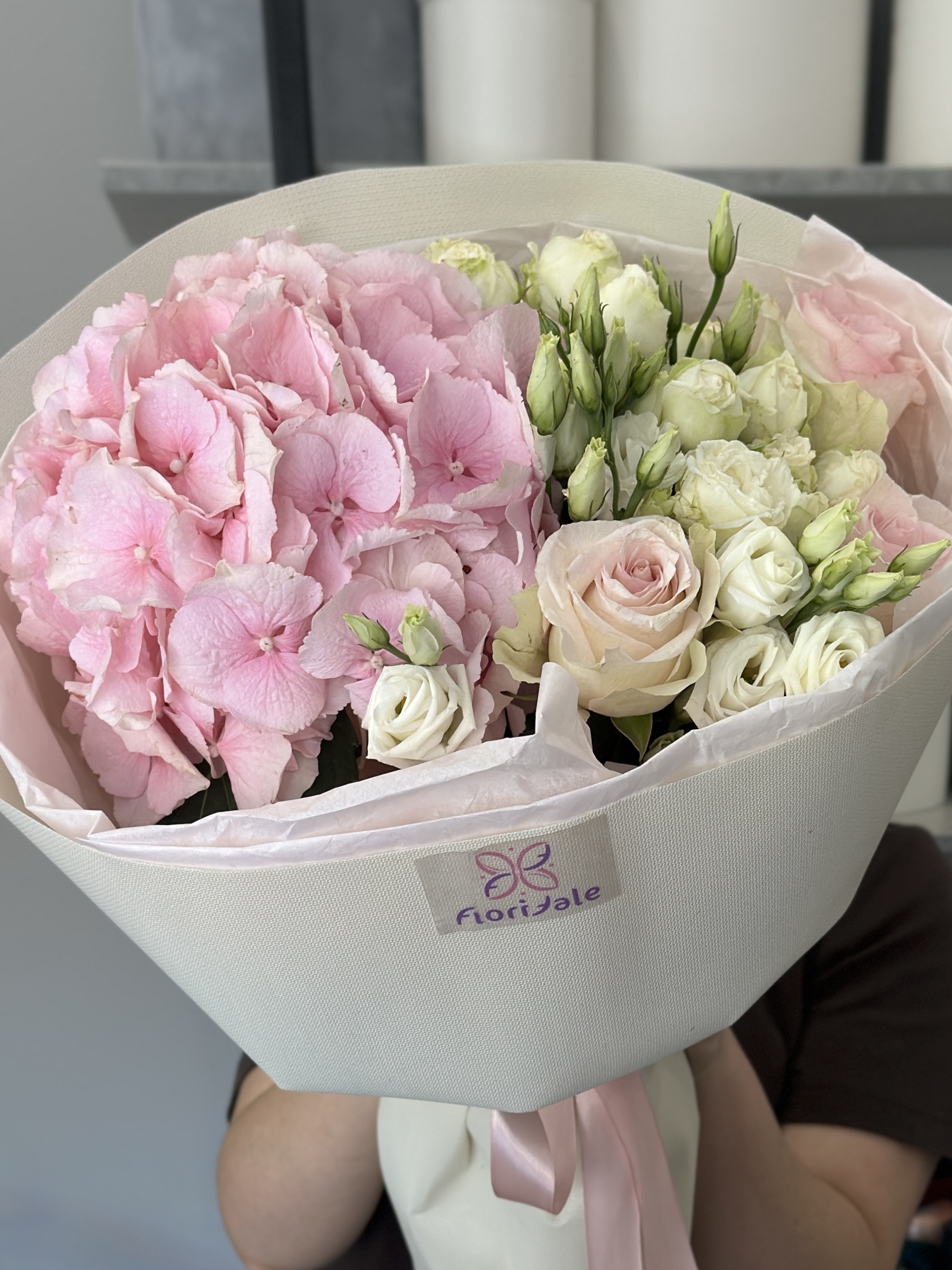 Состав: гортензии, розы, эустома
