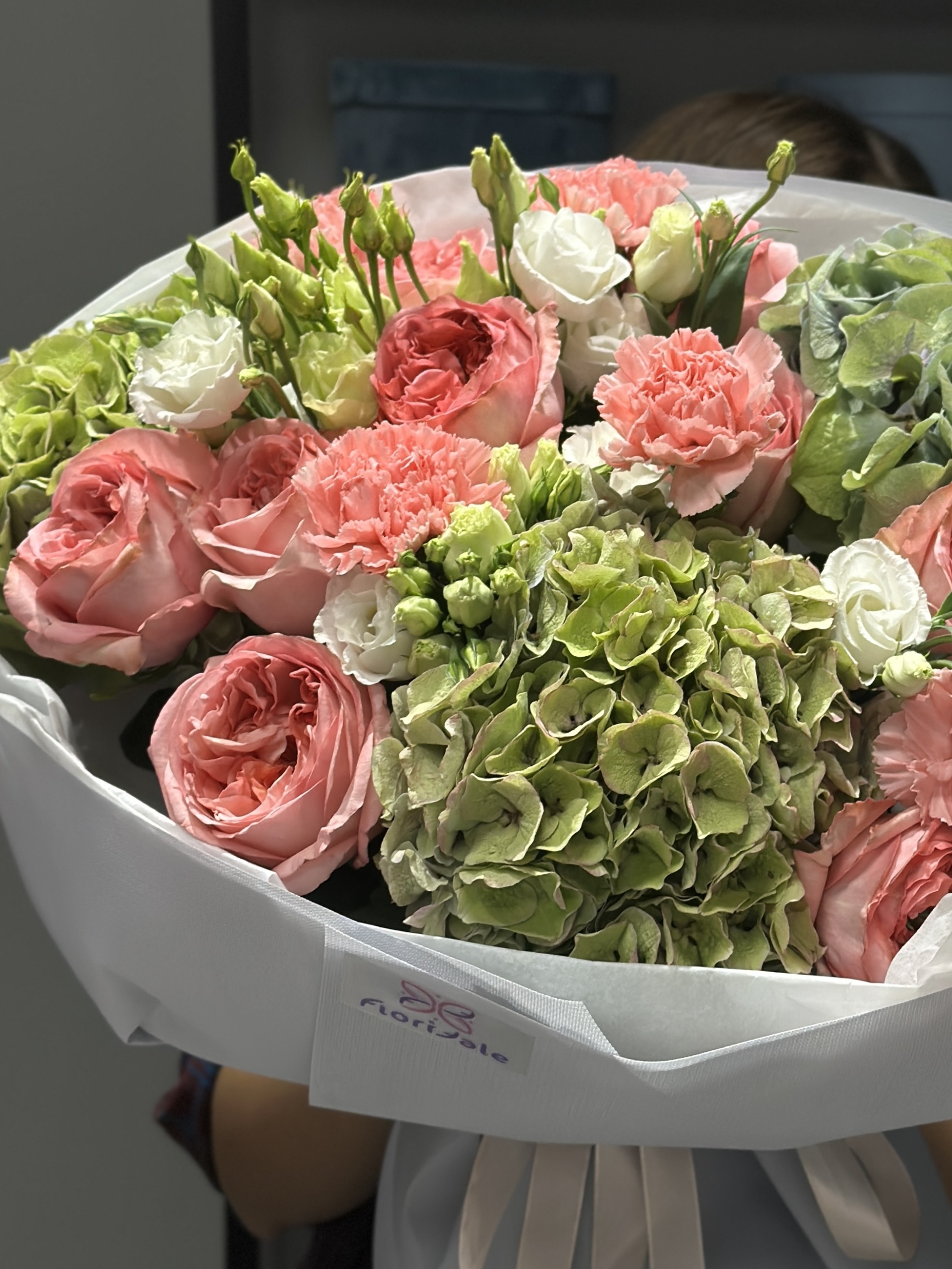 Склад: гортензії, півонієподібні троянди, діантуси, еустома